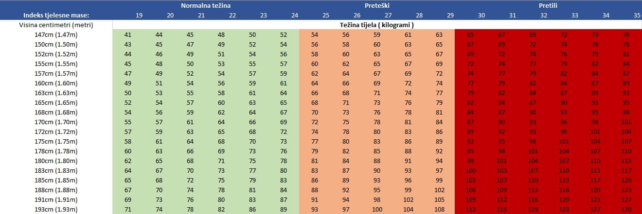 Kako se koristi tablica idealne težine