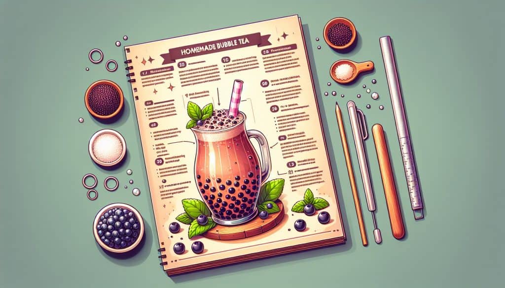 Recept je sljedeći: Sastojci - 1 šalica tapioka kuglica, 4 šalice jačeg crnog čaja (ili drugog čaja po vašem izboru), led kockice, 2 šalice mlijeka, 200 grama šećera, 250 mililitara vode. Priprema - Prvo krenite sa zagrijavanjem vode i šećera. Kuhajte sve dok se šećer ne otopi i zatim maknite s vatre i ostavite da se ohladi. Ukoliko ste kuglice kupili, tada ćete ih pripremiti prema uputama proizvođača, zatim ih ocijediti i ubaciti u prethodno kuhani šećerni sirup.