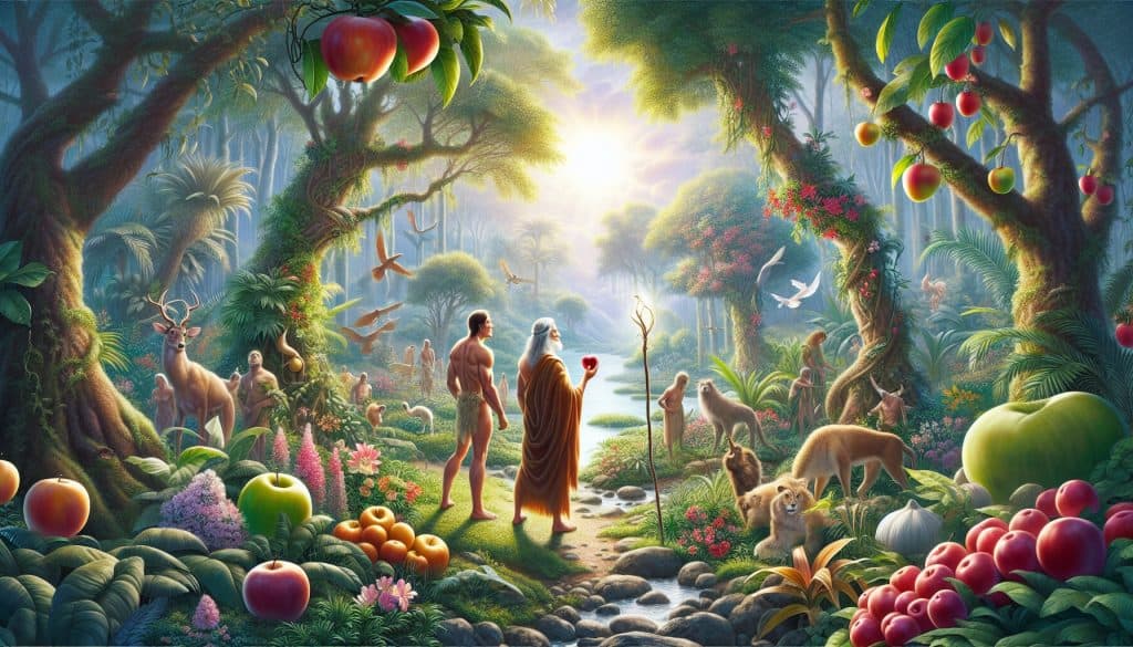 Adam i Eva spominju se u Knjizi postanka, te Talmudu i Kuranu kao prvi ljudi koje je Bog stvorio i pružio im blagodati Edenskog vrta u kojem nisu ništa radili već užvali u plodovima prirode. Do trenutka kada su pojeli zabranjeno voće idila je trajala, no prekršeći Božju zapovjed da ne jedu zabranjeno voće oni su bili prokleti i otjerani iz Edenskog vrta.